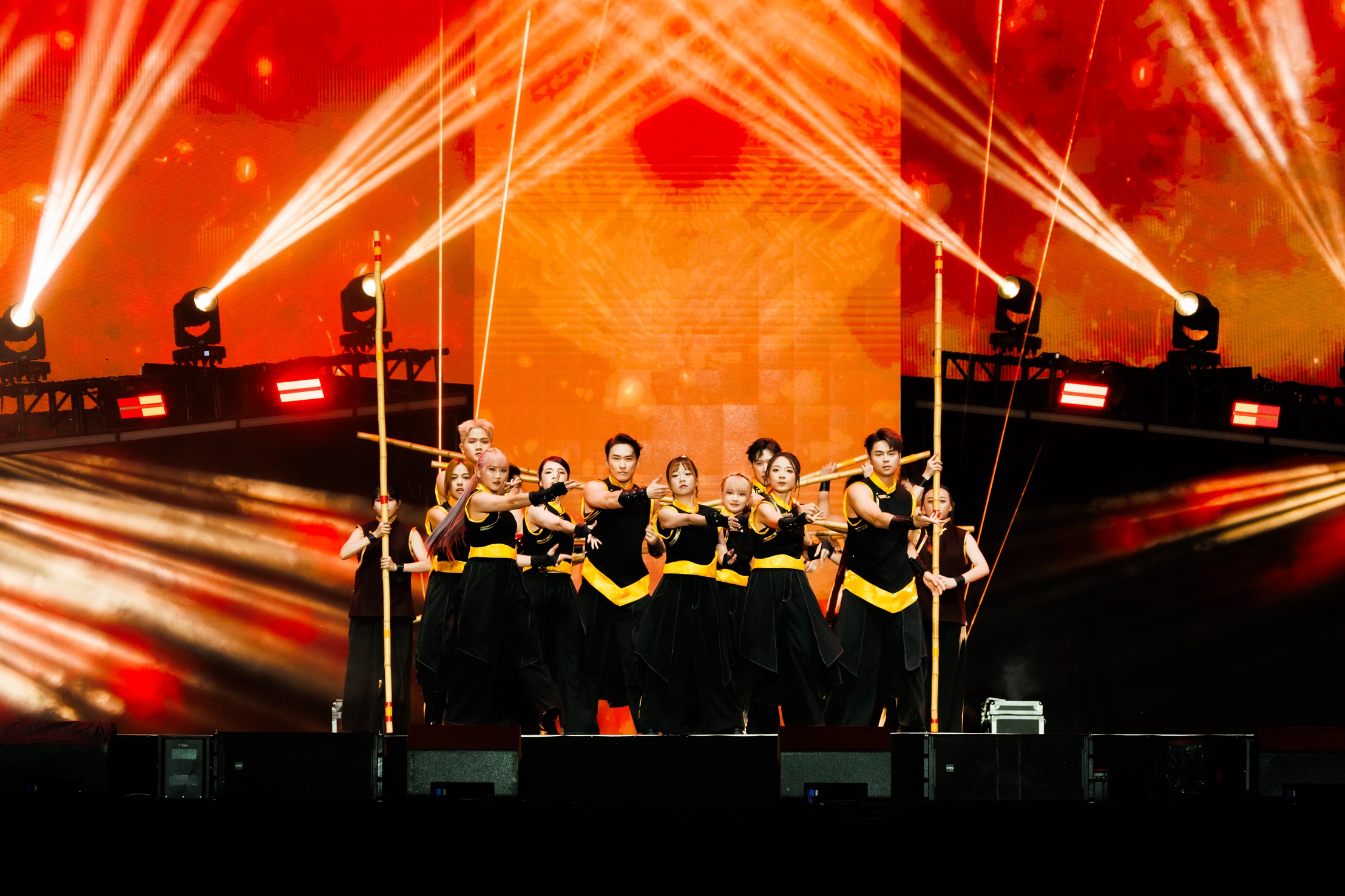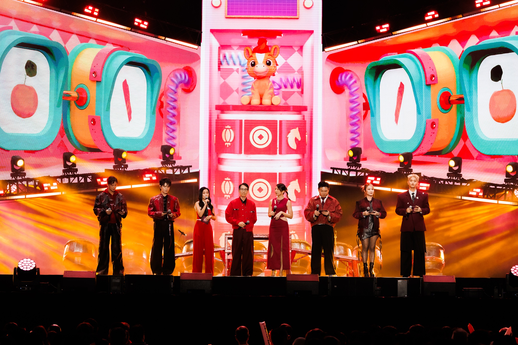 舞蹈表演环节由 Joe 曾耀祖、Maq 赖铭权、Kryston 温杨、YYY 盈盈、Estee 陈昭伶、林晓倩、Aaron BoscoKakaMiko Jenn 接力登场,以活力动感、爆发力十足的舞台演绎,同时将民族元素巧妙融入编排,展现东马多元文化的独特魅力。紧接着,1119、钟盛忠、钟晓玉、Benny、娃娃、常勇、舒森、常乐、Weon 关萃汶、黄界錤、Yoon 吴家润、William 辛伟廉、Kayley 凯欣、Nicholas 翁书尉、Min 黄毓敏、Candy 小潼、大头 AkiRibbon 黄若熙、Geraldine 颜慧萍及 Nicole 赖淞凤轮番献上喜气洋洋的新年串烧,为现场再添浓厚年味。