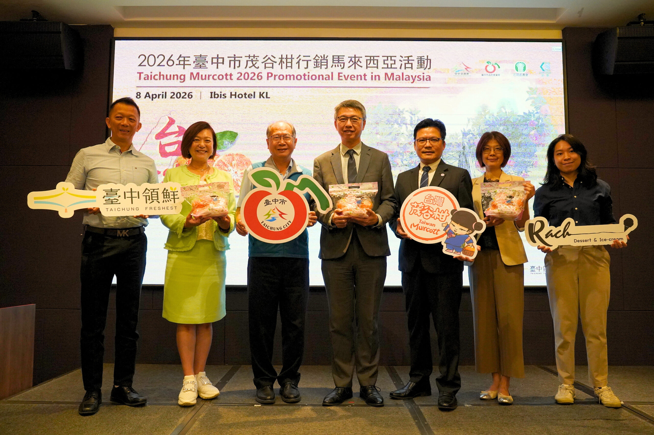本次推广活动吸引台马双边代表出席,包括驻马来西亚台北经济文化办事处经济组长章远智、吉隆坡台湾贸易中心主任高慕文、石冈区农会主任廖廷坚与推广部主任傅裕钦、马来西亚台湾商会联合总会秘书长蔡棋鸿,以及凯胜股份有限公司执行长陈忠庆与 Rach Dessert & Ice Cream 联合创办人陈文颖等,共同见证台中茂谷柑持续深化台马农产交流。