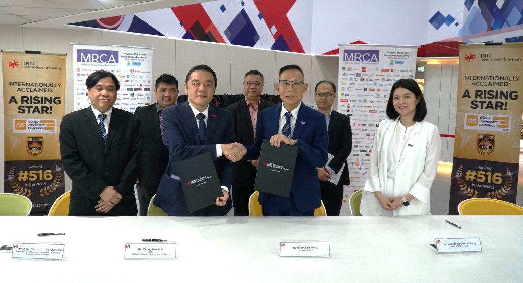 英迪国际大学(INTI)与大马零售连锁协会(MRCA)签署谅解备忘录,以加强教育与行业的联系。此次合作将推动行业导向的资格认证,以及专业培训课程的开发,并促进商界领袖与学生之间的知识交流。